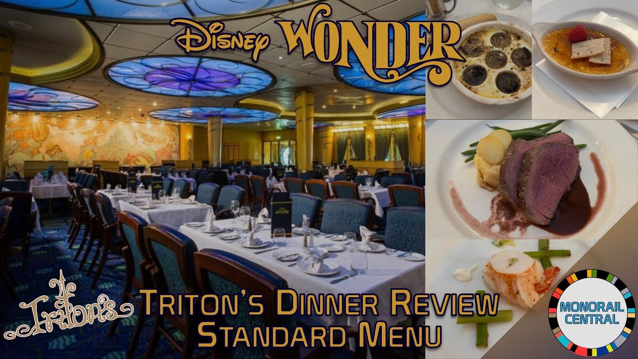 This review focuses on the main Triton’s menu, which is guaranteed on all cruises aboard the Disney Wonder. This menu is identical to the ones found at Lumiere’s on the Disney Magic, Royal Palace on the Disney Dream, and Royal Court on the Disney Fantasy.
