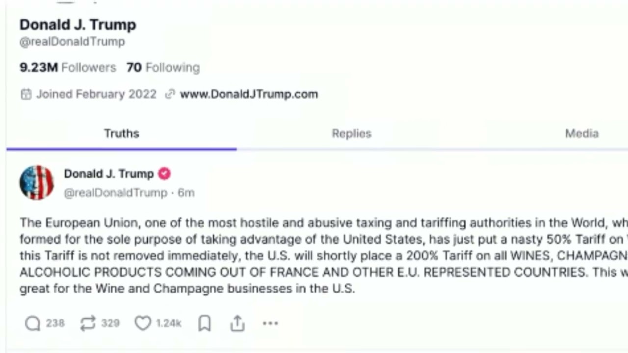 ED CONWAY,TRUMP TARIFFS,CANADA,MEXICO,DONALD TRUMP,TRUMP PRESIDENCY,TARIFFS,BUSINESS,ECONONY,TRADE,JD VANCE,JUSTIN TRUDEAU,UK,SKY NEWS LIVEPresident Trump,trump tariff,eu tariffs,european union,eu,european union tariffs global news,donald trump,European union,EU,EU tariffs,eu counter tariffs,france vs us,trump vs eu,trump eu tariffs,eu vs usa,eu news,eu latest,t local news,local,news,home,video component autoflow local,KSNT,KSNT Newsariff new,tariff latest,us news,alcohol tariffs,donald trumps tariffs,donald trump news,usa news,eu tariff response,eu counter tariffs to usa 3news-at-4,[ nation-world,economy,local,”money 200% tariff,European Union,Trump,abc news,abcnl,alcohol products,champagne,p_cmsid=2494279,p_vid=news-119751437,threaten Squawk Box U.S.,CNBC,business news,finance stock,stock market,news channel,news station,breaking news,us news,world news,cable,cable news,finance news,money,money tips,financial news,stock market news,stocks european union,EU,champagne,president trump,Donald Trump,tariffs,Tariffs,CBS News 24-7 Clips,Politics,World