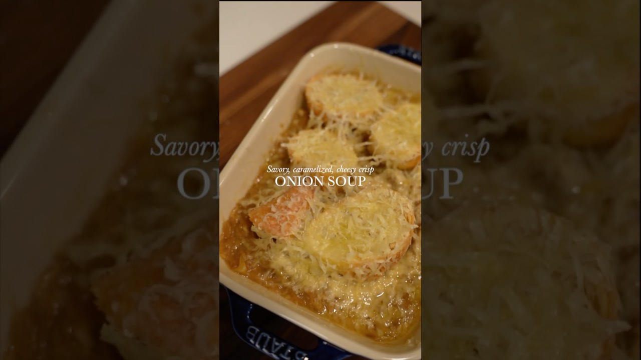 7. Place the baked baguette on top of the soup, grate Gruyère cheese over it, then bake the soup in the oven at 400°F (200°C) for another 5-7 minutes.