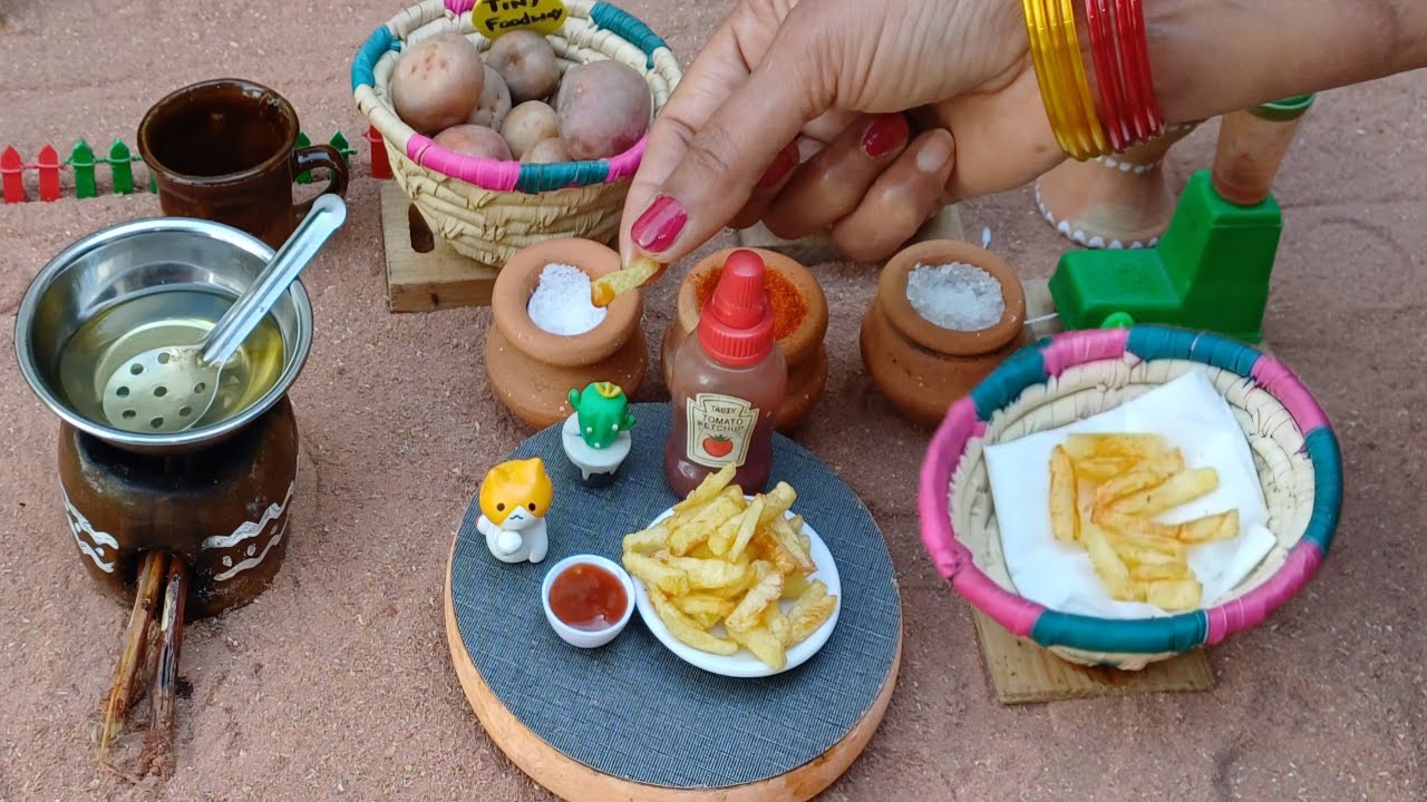 Miniature French Fries Recipe With Homemade Ketchup || Mini Fries with Ketchup ||Tiny Foodways