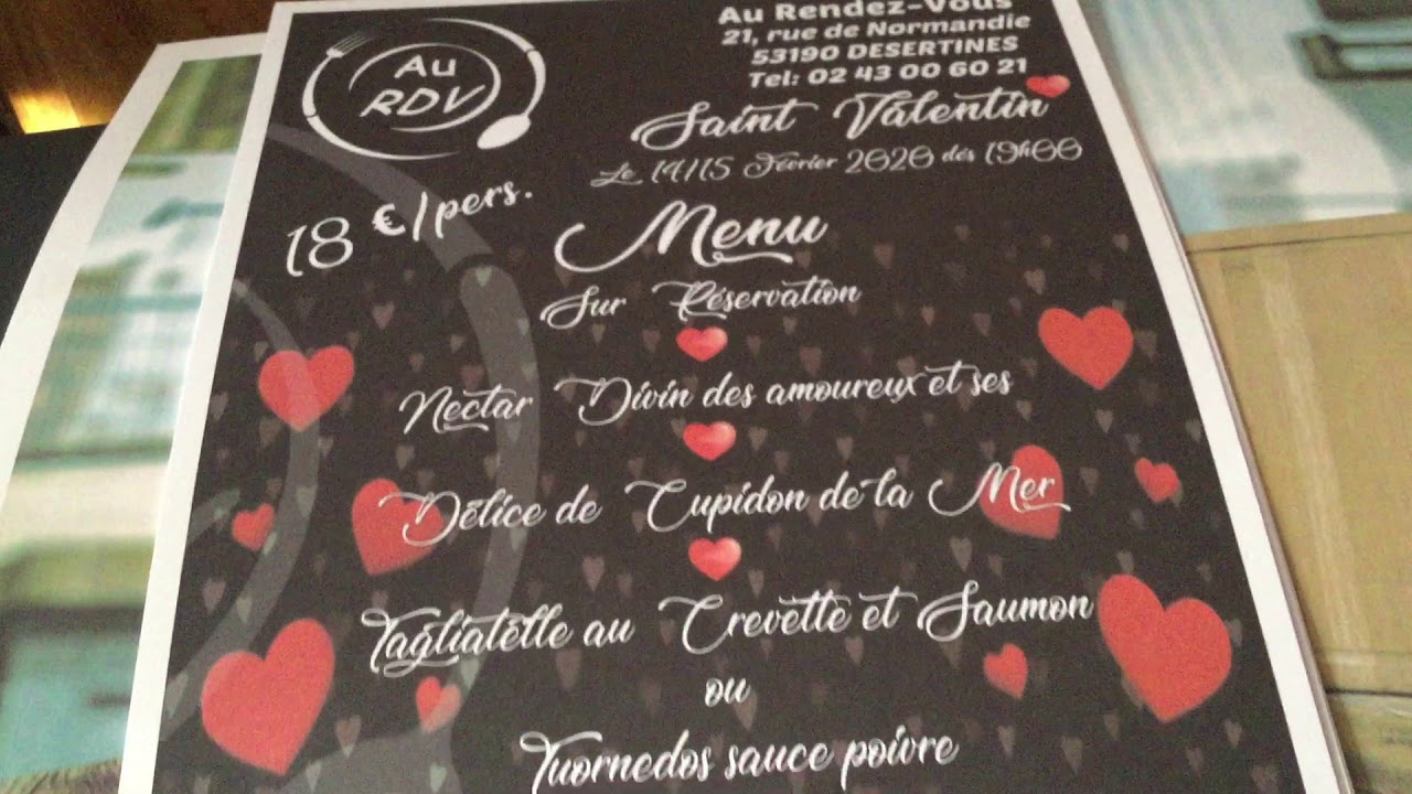 Bar Au RDV Valentines posters coming off the printer, if you are in or around the Desertines area of the Pays de la Loire why not treat your significant other to a fine menu and a few glasses of wine