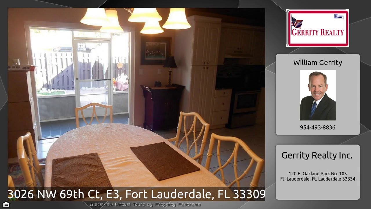 The Virtual Tour for the property at 3026 NW 69th Ct, E3, Fort Lauderdale, FL 33309 listed for $142,000: Other homes for sale by William Gerrity of Gerrity Realty Inc.: Villa that is completely updated. New kitchen with granite countertops,cabinets,back splash and stainless steel appliances. Bathroom completely updated including spa tub. New central air. New roof and exterior paint. Tile floors. Utility room off kitchen with washer and dryer. French doors off dining room to screened porch. Private/fenced back yard with gazebo. New gutters. Storage area. 2 assigned parking spaces in front …
