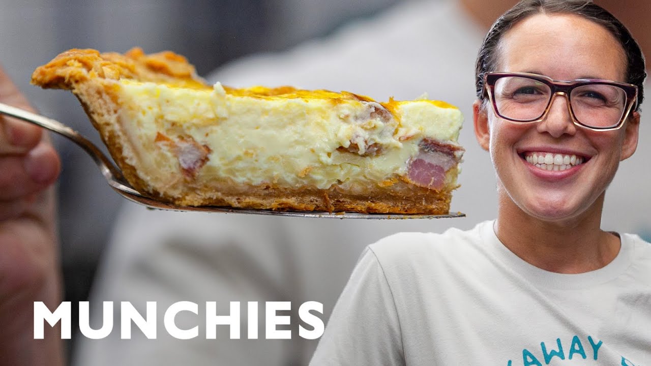 Tracy Obolsky, pastry chef and owner of Rockaway Beach Bakery in Far Rockaway, NY is in the MUNCHIES Test Kitchen making a surprisingly convenient grab-and-go meal: quiche lorraine. This brunch mainstay is a French tart filled with silky, eggy custard, smoky bacon lardons, and lots of Gruyere cheese, all surrounded by a flaky crust. Check out the recipe here: https://www.vice.com/en/article/5db4pa/quiche-lorraine-recipe