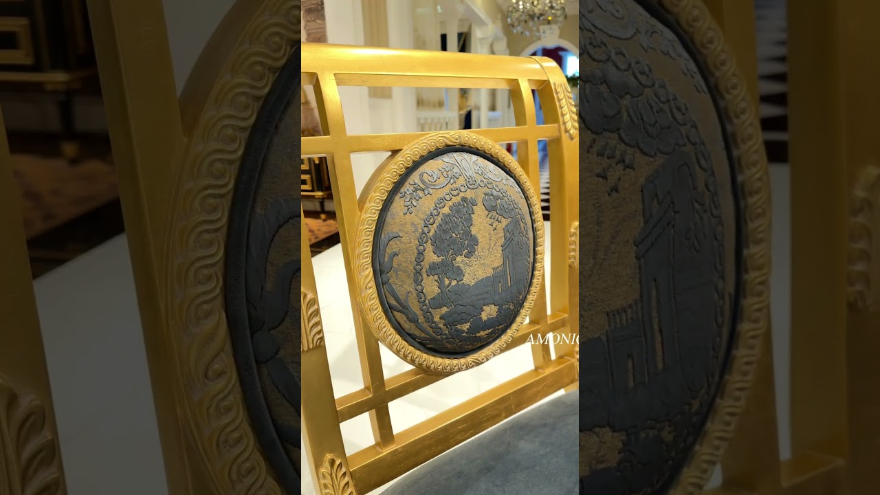 featuring blue upholstered carved chairs and a gracefully detailed wooden dining table with gold accents. Paired with a crystal chandelier and artistic wall decor, it transforms everyday meals into refined, French-inspired experiences.#amonic #ritong #frenchdiningtable #frenchdiningchairs #frenchfurniture #luxurydiningroom #palacestylefurniture #elegantdining