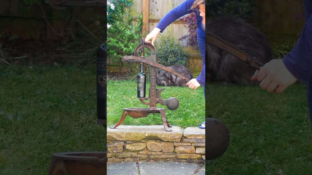 Antique, cast-iron wine corker “La Perle”, probably manufactured by Etablissements MATHÈS in the early 20th century. Still in working order, although in need of a repaint (which hopefully we’ll get round to sometime.) Obviously the wine bottle shown is just an empty we refilled as a test, hence the label 🙂
