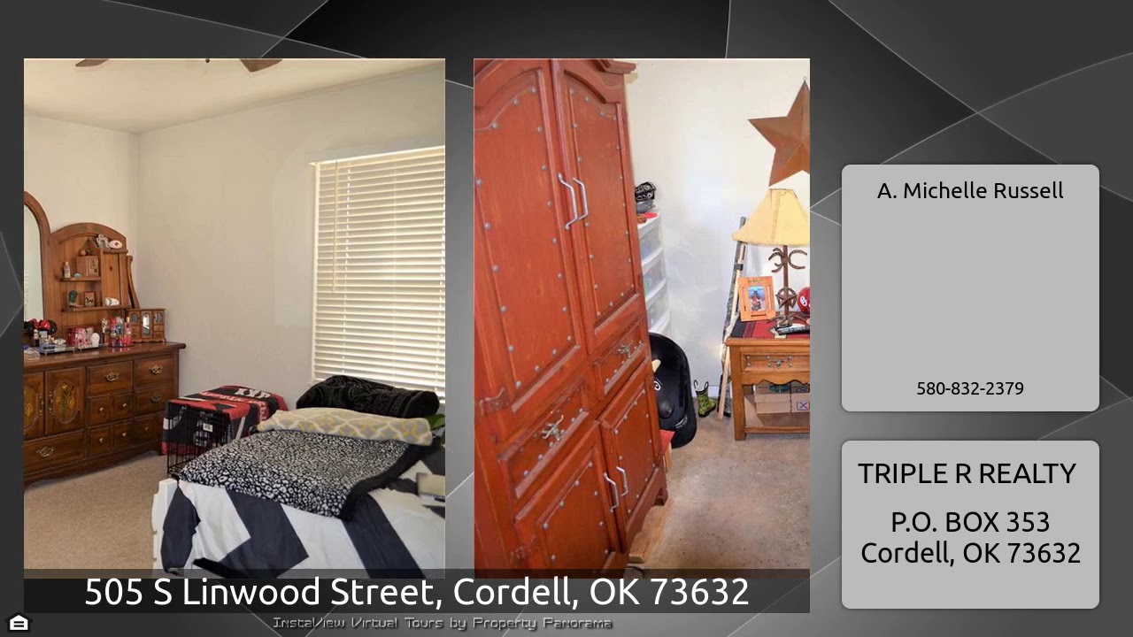 The Virtual Tour for the property at 505 S Linwood Street, Cordell, OK 73632 listed for $110,000: Other homes for sale by A. Michelle Russell of TRIPLE R REALTY: THIS CHARMING HOME features over 1830 sq feet boasting 4 bedrooms, 2 LIVING AREAS and large open Dining to sunny bright white Kitchen. French doors from the Dining Room lead to a big covered back deck great for relaxing at the end of the day. Bottom floor holds Master Bedroom, Bathroom and ADDITIONAL BEDROOM that could also be office, man cave or more ! Upstairs features two good sized bedrooms with large closets. THE BONUS Additional …