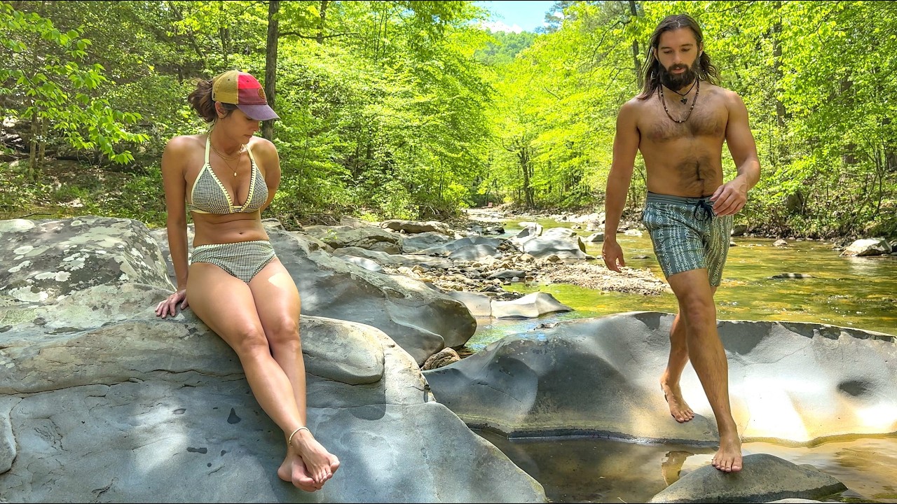 We’re camping off grid by a quiet creek, editing footage, checking in on our channel and leaning into our daily routine. Exercise, clean meals, skincare, and everything that keeps this lifestyle going. It’s not the wild side of travel, but it’s the part that holds it all together.