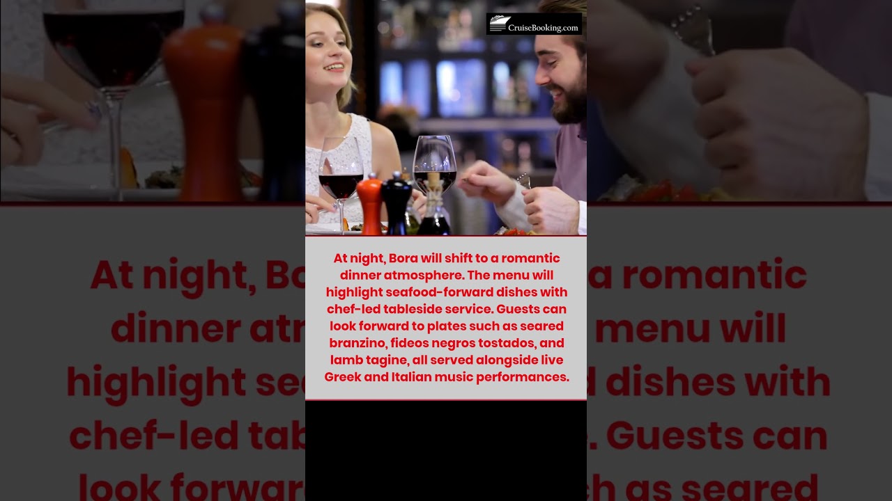 At night, Bora will shift to a romantic dinner atmosphere. The menu will highlight seafood-forward dishes with chef-led tableside service. Guests can look forward to plates such as seared branzino, fideos negros tostados, and lamb tagine, all served alongside live Greek and Italian music performances.