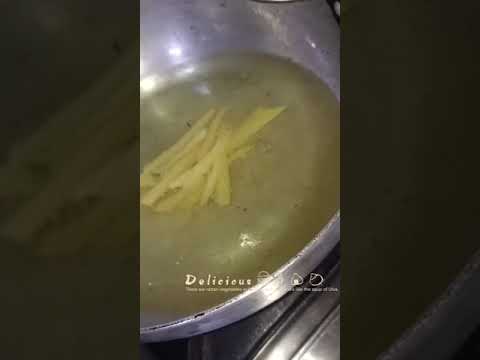 Maine do Aalu liye unko french fries ki shape Mein Kat liya aur FIR unhen garm Pani Mein Aadha Ghanta Rakh Diya aur Jab Gal Jaaye to nikal lo FIR Maine oil Mein dalkar tal Diya aur masala add ker Diya , or ab banker tayaar hai