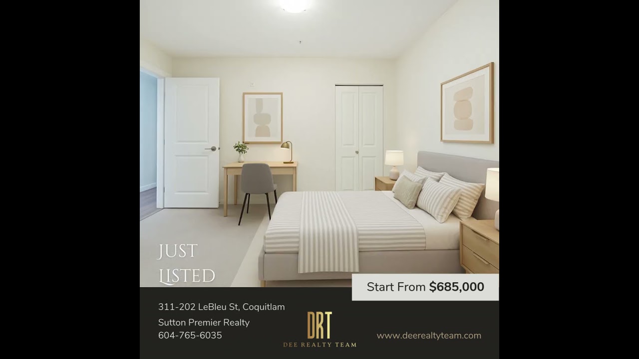 Welcome to Mackin Park by Bluetree Homes—where modern living meets a charming, heritage-inspired community. This bright and spacious 3rd floor corner unit offers over 1000 sq ft of thoughtfully designed space. The gourmet kitchen boasts full-sized stainless steel appliances, quartz countertops with Grohe faucets, and ample cabinetry. Enjoy sleek laminate flooring in the main areas and cozy carpet in the bedrooms. Step onto your oversized balcony—perfect for year-round BBQs and relaxing in the shade. Nestled in a French-inspired, village-like setting just steps from shops, cafes, parks, and a 2-minute bus ride to Braid SkyTrain. Comfort, convenience, and timeless style await