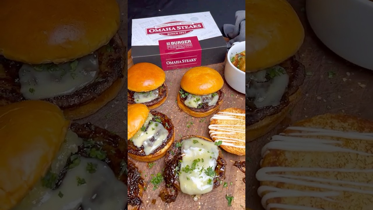 4. Place burgers on the toasted buns and top with semi-melted cheese. Serve with Omaha Steaks Gourmet Steakhouse Fries.