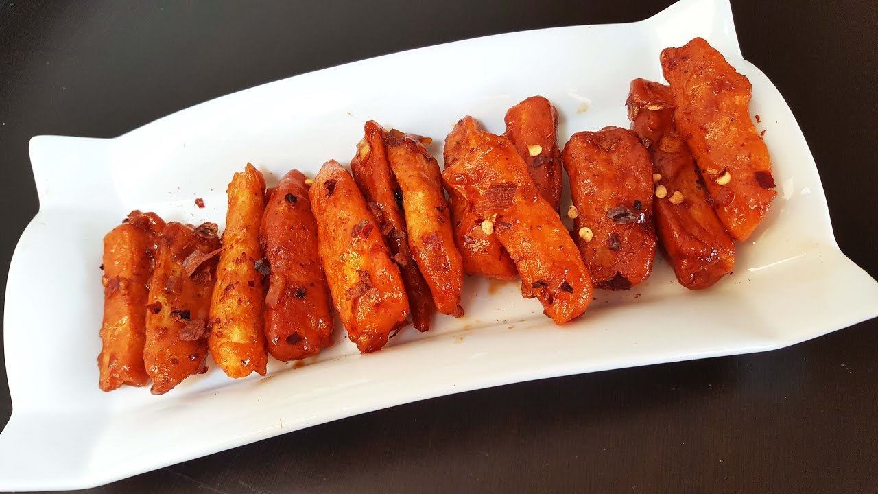 For the sauce – 2-3 tbsp oil, 1 ½ tbsp finely chopped garlic, 1 tbsp finely chopped ginger, 1 tsp red chilli flakes, 2 tbsp red chilli sauce, 2 tbsp plain water, 1 tsp white vinegar/lime juice, ½ tsp sugar/honey (optional), salt to taste.