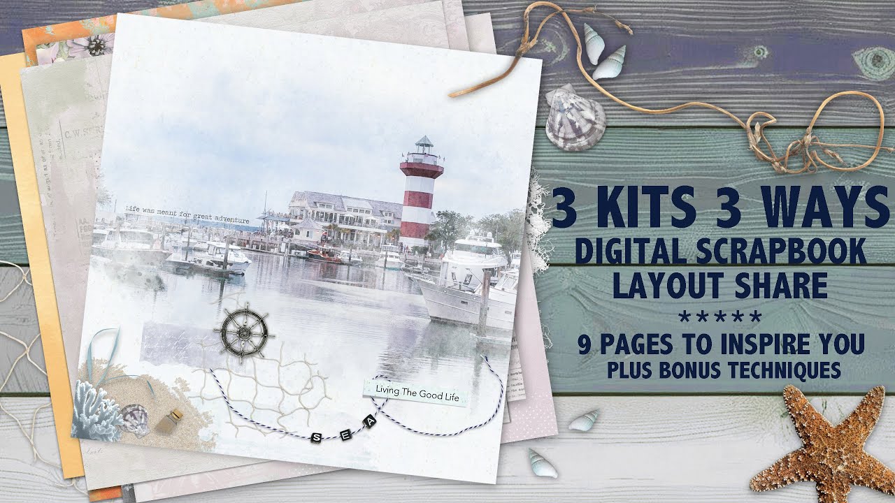 “Howdy, my digital scrapbook friends! Today I’m excited to share 9 layouts I created using 3 different kits. Plus, I’ve included some bonus tips and tricks you might not know yet—perfect to try out on your next digital scrapbook layout!”