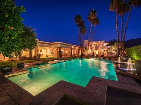 A Mediterranean Oasis in the exclusive enclave of Bella Monte. This 8,000 SqFt estate on 1.2 acres (now on FEE LAND after owner bought out lease) w/panoramic views of all 3 mountain ranges. Long circular driveway invites you in while showcasing the grand portico to main house & extensive front lawn.The main living area features dramatic beamed ceilings, wet bar, substantial FP that opens to two outdoor entertaining spaces with French doors on both sides. An entertainer’s delight w/formal dining room, adjacent kitchen & den. Expansive covered patio offers a second living room w/FP, plus BBQ & dining area. Make a splash in your private oasis w/oversized pool w/tanning shelf, water features & spa while admiring the surrounding mountain views & mature landscaping. All BRs are ensuite w/private outdoor space. Master BR features a spacious retreat w/stunning west facing mountain views, dual walk-in closets, sauna & gym.The oversized master bath is your private spa w/large shower w/dual shower heads, bathtub w/views of private garden w/outdoor shower. Rare 2nd level lounge & observation deck w/living room, wet bar, private bath & outdoor sundeck w/elevated views.