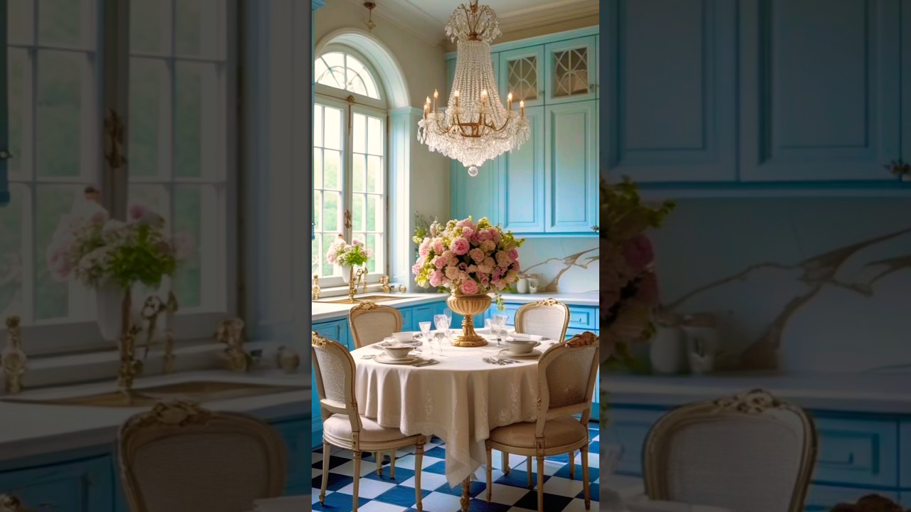 Elegant French Blue Kitchen-Dining I Classic European Interior Design Inspiration
