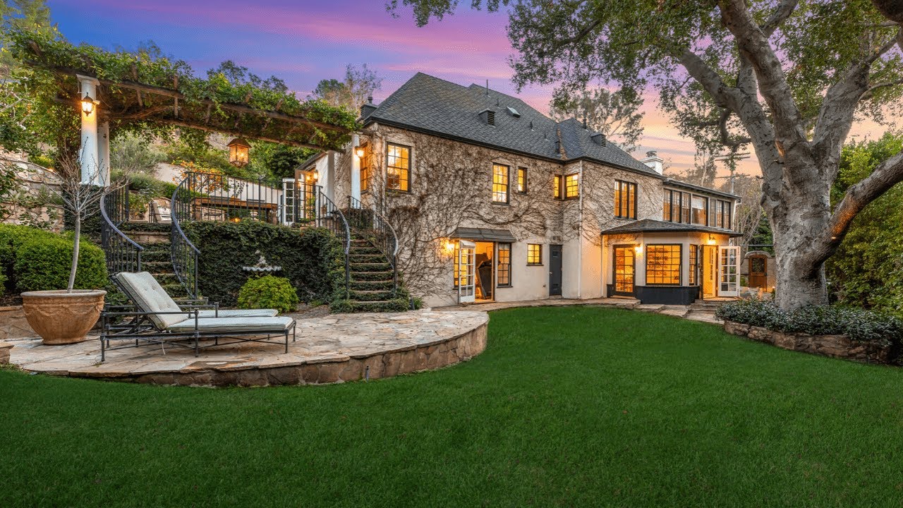 Majestic European-style mini-estate surrounded by privacy hedges and a gated driveway, offers easy Beverly Hills access. A lavender-lined garden path leads to the front door. Off the foyer, a formal living room features high ceilings, fireplace, and leaded-glass windows that bring in an abundance of natural light. French doors connect the living room to a sunroom/study/playroom that overlooks the lush backyard. Picturesque formal dining room is ideal for family/holiday dinners. Character continues throughout with tudor-style windows, arched walkways, and designer light fixtures. Recently remodeled kitchen features top of the line appliances, plenty of cabinetry, and bar-stool seating for a quick meal. French doors in the kitchen showcase a view of the outdoor patio, which features a gorgeous ivy covered pergola and wrought-iron dual staircase that leads to the lawn. Master Suite features built-ins with plenty of storage and windows that overlook the backyard and fill the room with natural light. Master en-suite features a claw foot tub, walk-in shower, and dual sins. Second bedroom is extra large with en-suite. Downstairs offers an en-suite bedroom, spacious family room with French doors to the backyard, as well as direct access to the garage. Large grassy yard has gorgeous, mature, landscaping that provides maximum privacy, garden paths, fruit trees and a stunning oak tree, perfect for a kids swing and picnicking under. Almost equidistant to Beverly Hills and Downtown!