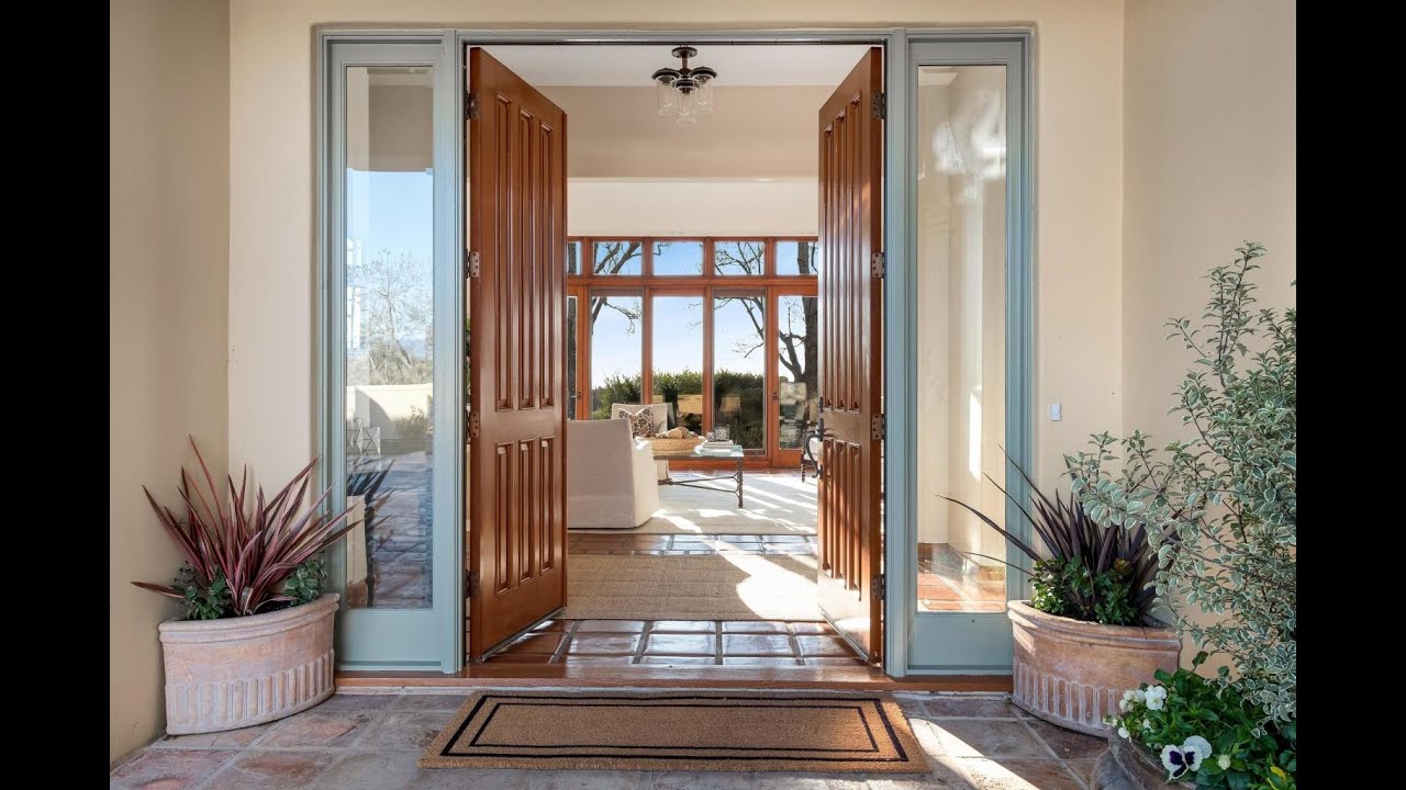 With elegant grandeur and tranquil serenity, this beautiful hilltop home on nearly nine acres in the Santa Ynez Valley greets you with vistas in all directions. The beauty of nature sits at your fingertips. Watch storms come through, enjoy the fresh green fields, and bask in the colors of early sunrise and vibrant sunsets. Stylish sophistication beckons the most discriminating buyer looking for privacy and inspiring views in this coveted location, only minutes to town. Either as a primary residence or as a second home, one will find this a sanctuary and private retreat. A quiet sense of ease welcomes you from the moment you drive through the gates and enter the courtyard graced by the music of the trickling fountain. Upon entering you are welcomed by the warmth of Saltillo tile floors and impressive views beyond the length of the French Doors with clerestory windows that extend into the dining room with an open flow Light dances off the walls and the coffered ceilings, enticing you to cozy up by the stone fireplace in a most elegant setting.