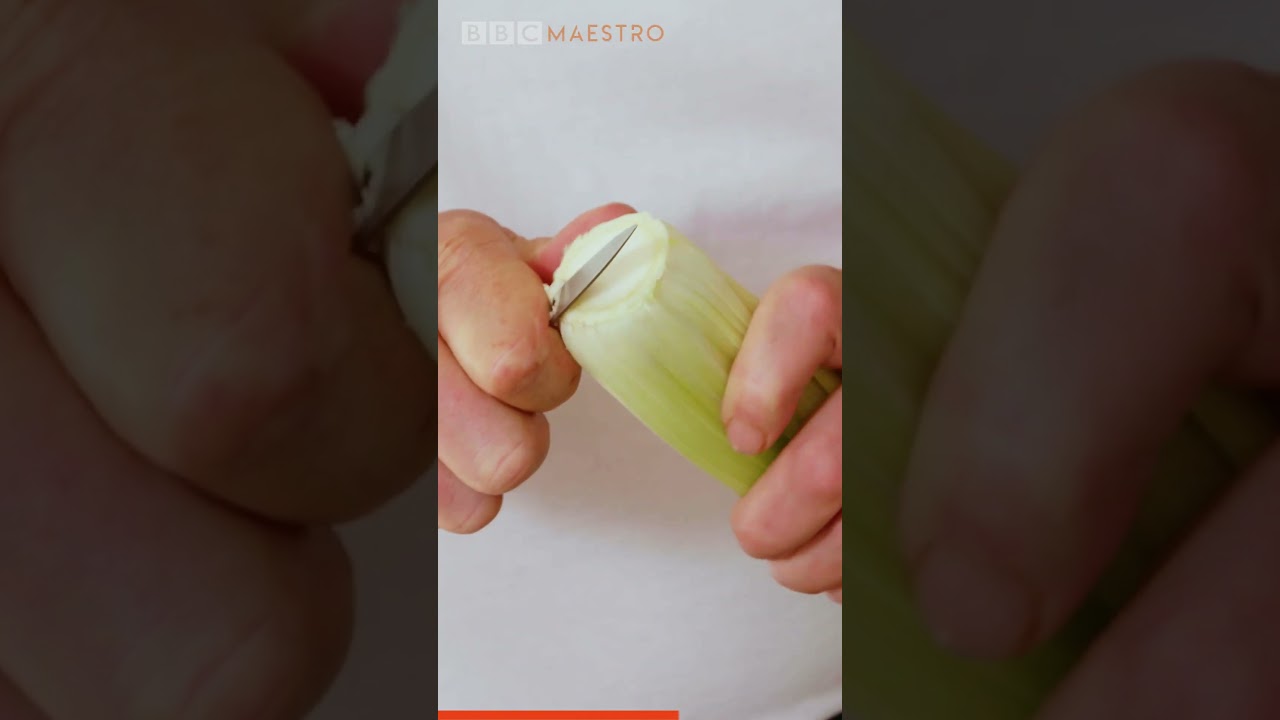 How to make a generous side dish: “Take your humble celery and remove some of the root. There we are.” “Marco, that’s just an uncut celery stick.” “Little bit of olive oil.”