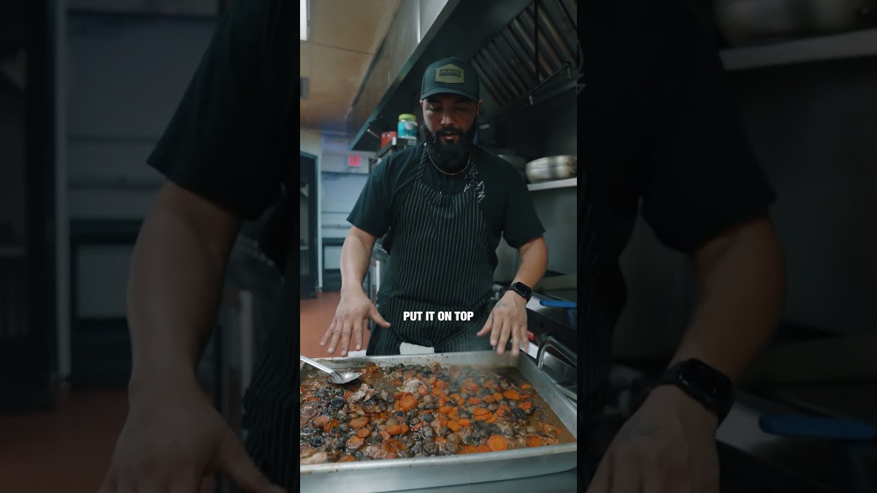 This is one of our heavy hitters, and for good reason. The chicken is dark meat, slow-braised for hours in red wine, with rosemary, carrots, mushrooms, and pearl onions. It falls apart with a spoon. 🥄🤤