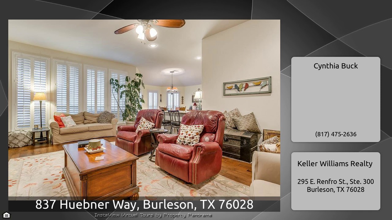 The Virtual Tour for the property at 837 Huebner Way, Burleson, TX 76028 listed for $299,500: Other homes for sale by Cynthia Buck of Keller Williams Realty: Gorgeous 3 Bedroom, 2 Bath, 2 Car Garage Home with Study in Oak Valley Estates – Backs up to Greenbelt! Features: 17×14 Detached Brick Studio with French Doors, Storage Area with Covered Patio. Large Living Area with Wood Floors, Gas Fireplace. Huge Island Kitchen with Granite, Tile Back Splash, Gas Stove, Breakfast Bar, New Stainless Appliances. Breakfast Room. Formal Dining. Study with Built in Desks, Wood Floors, French Doors. …