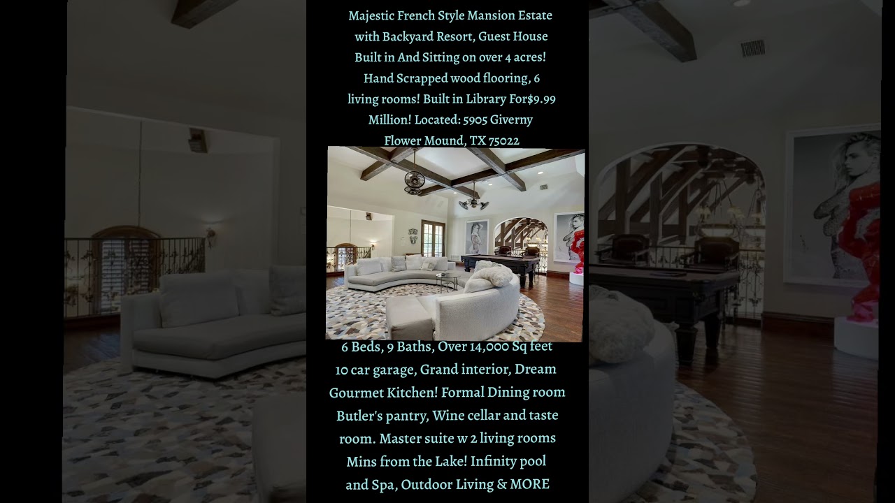 ” MAJESTIC WATERFRONT FRENCH MANSION”❤️❤️ Estate with Built in Guest House, Pond, Sitting on over 4 acres of Land as Well as Backyard Resort ALL IN 1″ 🏰🏰🏰🏠 FOR $9.99 Million !!! .. Located: 5905 Giverny, Flower Mound, TX 75022