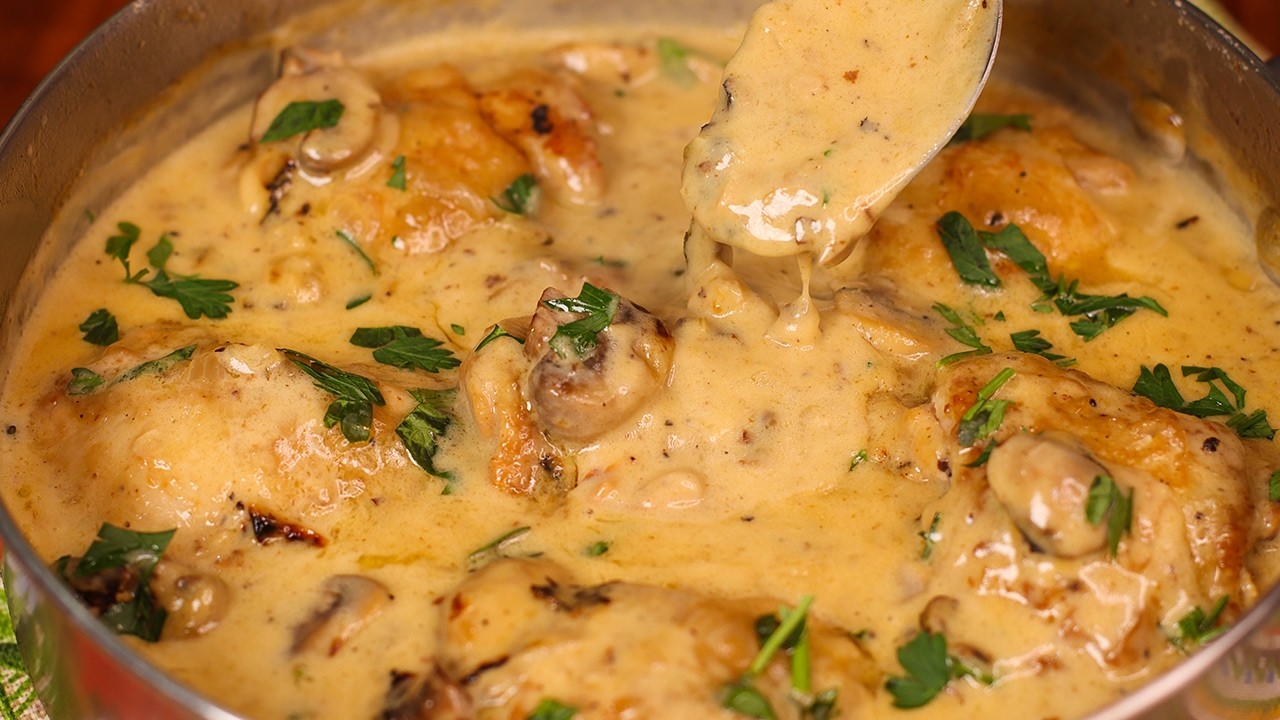 This French chicken fricassee is an easy and delicious chicken thighs recipe that’s perfect for dinner! Juicy chicken thighs are cooked in a rich, creamy sauce with mushrooms, garlic, onions, and white wine — full of flavor and comfort. It’s a classic French chicken dish made simple and accessible for home cooks. This one pan dinner is ready in about 50 minutes and requires only basic ingredients. Great for busy weeknights or cozy family meals, it delivers restaurant-quality taste with minimal effort. If you’re looking for a creamy chicken skillet recipe or a quick chicken dinner idea that’s both satisfying and elegant, give this French chicken fricassee a try — it might just become your new favorite! ASMR cooking video with light relaxing music.
