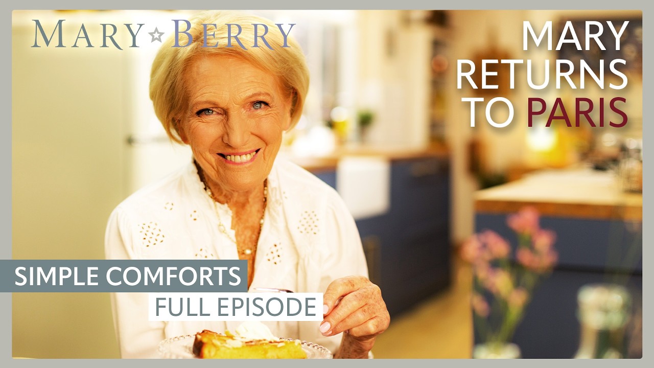 Mary Berry’s brand-new series is all about truly delicious food that is simple to make and comforting to eat. Across six delightful episodes, Mary braves the elements to discover, and cook, the most heart-warming dishes on offer in the UK and abroad: The indulgent delights of Paris; the hidden gems along the majestic Thames; the traditional fayre of Ireland’s abundant pastures; the comfort foods that remind us all of Home; the delicious seafood found along the stunning Yorkshire coastline and the steaming comforts perfect for a wintery Scottish night.