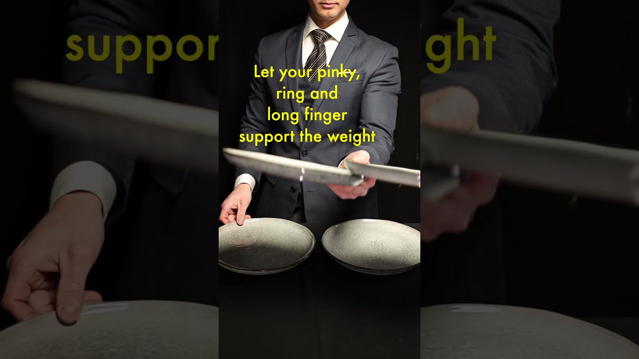 Hold you hands out like you’re hanging lose 🤙 now hold the plate with your three fingers, curl your thumb and pinky over the plate so you can rest the second plate over it and hold it with your curled thumb and pinky. That will safely hold four plates that are heavy. This videos method looks like you could carry six plates possibly! The weight and distribution is the problem, dishes on the plates might slide and cause a problem. Thank you for the technique!