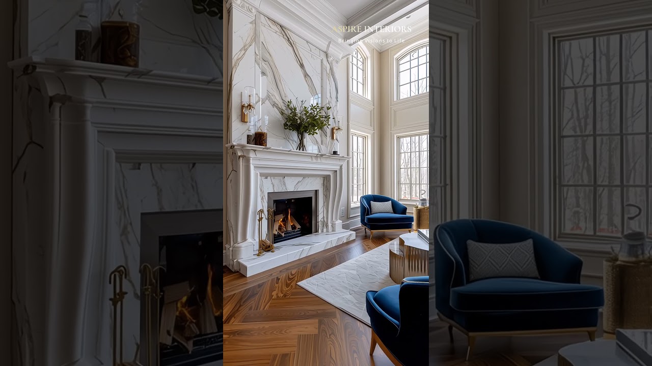 Experience the refined elegance of navy blue velvet and antique brass in this stunning luxury residence. See how these sophisticated materials create warmth and comfort while maintaining the geometric precision of neoclassical design.