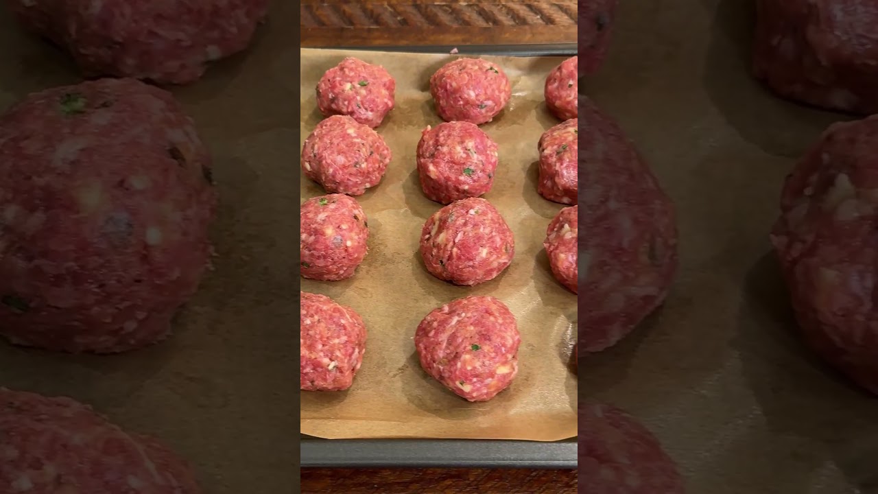2. Combine ground beef, pork, bread crumbs, herbs, egg, cheese and seasoning into a mixing bowl and form golf ball sized meatballs