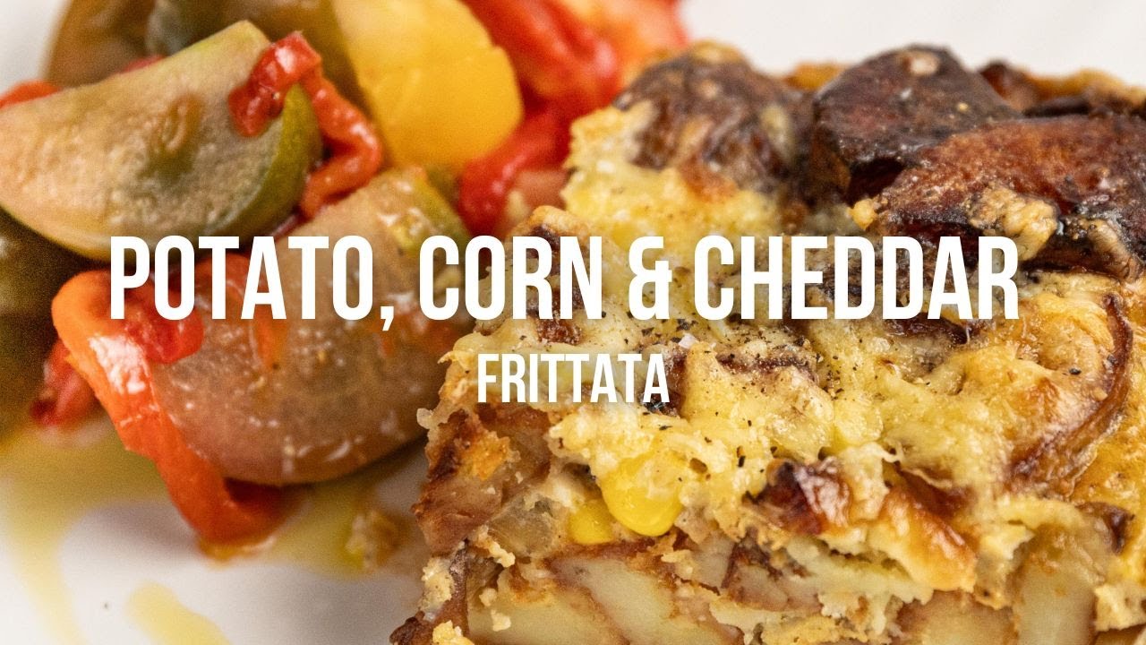 Full Recipe: https://everydaygourmet.tv/recipes/potato-corn-cheddar-frittata