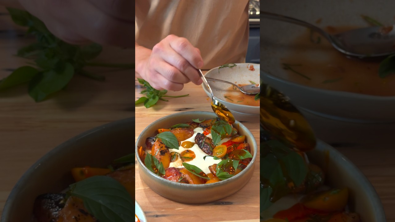 1. I make a peach and cherry tomato sause with white beans, basil, onions and garlic. With koren red chili flakes, finished with goat cheese. This seem very a like in flavor profile. I'll have to try it.