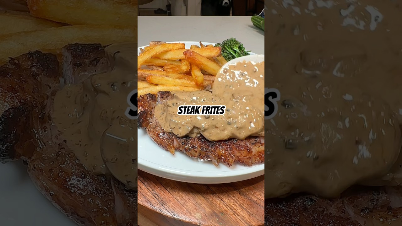 STEAK FRITES with Mushroom Black Peppercorn Garlicky Cream Sauce & Truffle Fries! 🥩