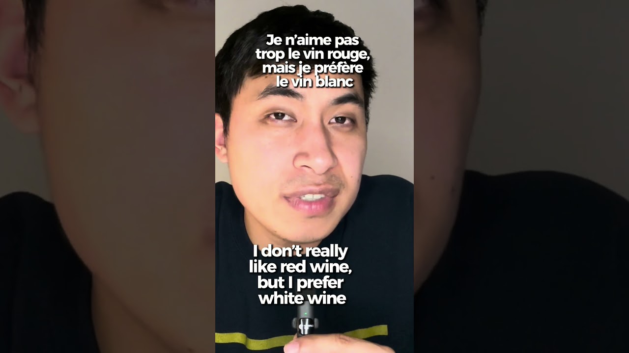 🍷 Je n’aime pas trop le vin rouge, mais je préfère le vin blanc — I’m not a big fan of red wine, but I prefer white wine