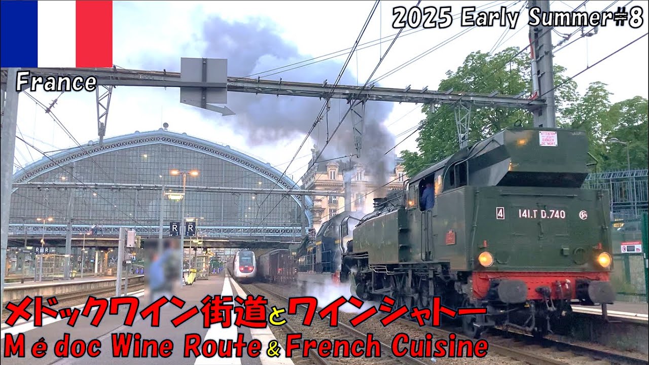 After eating delicious breakfast at ibis Hotel in Bordeaux, France, we go to photograph a steam train running along the Medoc Wine Route on the 2nd day.