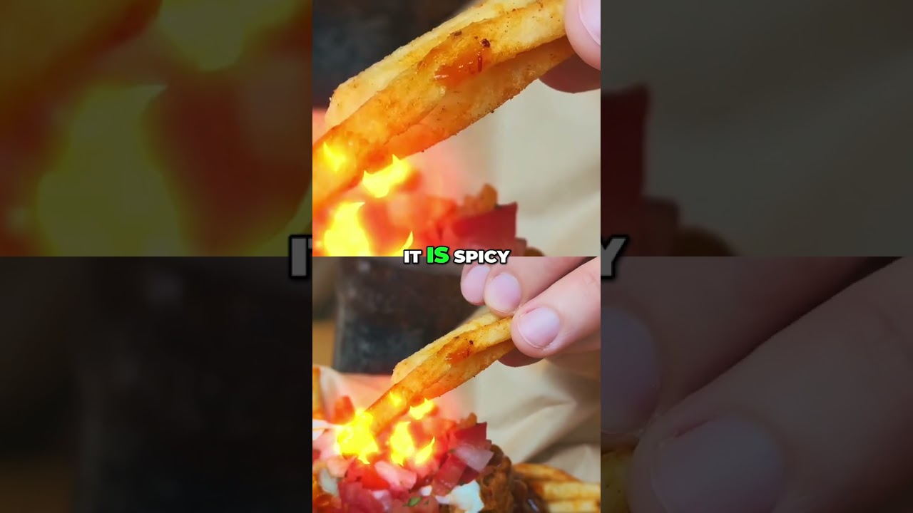 A first taste of Taco Bell’s french fries reveals a flavorful dry seasoning. The red sauce packs a spicy punch. The loaded fry version includes meat, tomatoes, sour cream, melted cheese, and kimchi for a messy experience. #TacoBell #FrenchFries #FoodReview #Kimchi #Spicy #FastFood