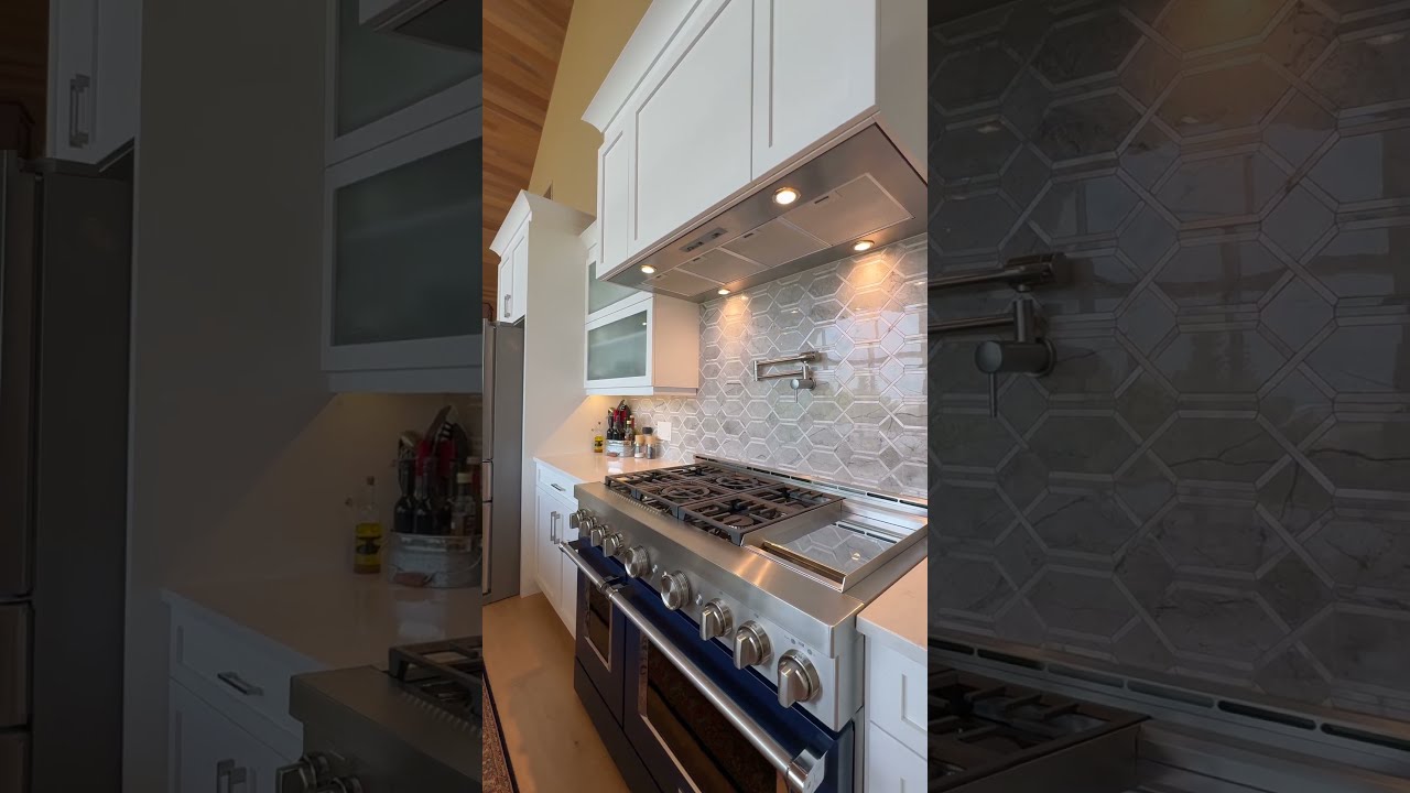 Experience the ultimate in contemporary living in this custom-built sanctuary, where every detail is thoughtfully designed for comfort and style. Soaring cathedral ceilings and 24 foot windows with custom blinds flood the interiors with natural light. The gourmet kitchen blends beauty with function, boasting a professional-grade 5 foot gas stove with double ovens. A stunning walnut waterfall island anchors the space, complimented with under and over cabinet lighting, and a custom cherry wood focal light. The outdoor living area is a showstopper! An all-season retreat for grand entertaining or quiet relaxation. A professional grade Vulcan gas range, French door fridge, and electric fireplace sit within sleek cabinetry, while a massive 12-foot garage door opens fully to the waterfront. A stone patio with a wood-burning fireplace, a covered roof with automated blinds, a built-in BBQ hookup, and a full irrigation system make outdoor living effortless. The entire home and outdoor patio is fully wired for integrated wireless speakers, allowing music and sound to flow seamlessly from room to room. The primary suite is a serene escape with a walk-in closet and a spa-like ensuite featuring five shower heads. Additional bedrooms offer engineered wood floors and TV wiring, while the main bath impresses with a walk-in shower and feature tile wall. The two-car garage is both stylish and functional, finished with a pristine epoxy floor, custom cabinets, a built-in sink, and automatic lighting. This residence is as breathtaking as it is brilliantly functional, featuring four decks, multiple fireplaces, spray foam insulation, in-floor hot water loop heating, and a fully automated system. The exquisite Capstone cabinetry throughout the kitchen, outdoor area, and garage unifies the entire design. The home’s powered by a 200-AMP electric boiler, a 1400W generator, and an EV charger hookup.