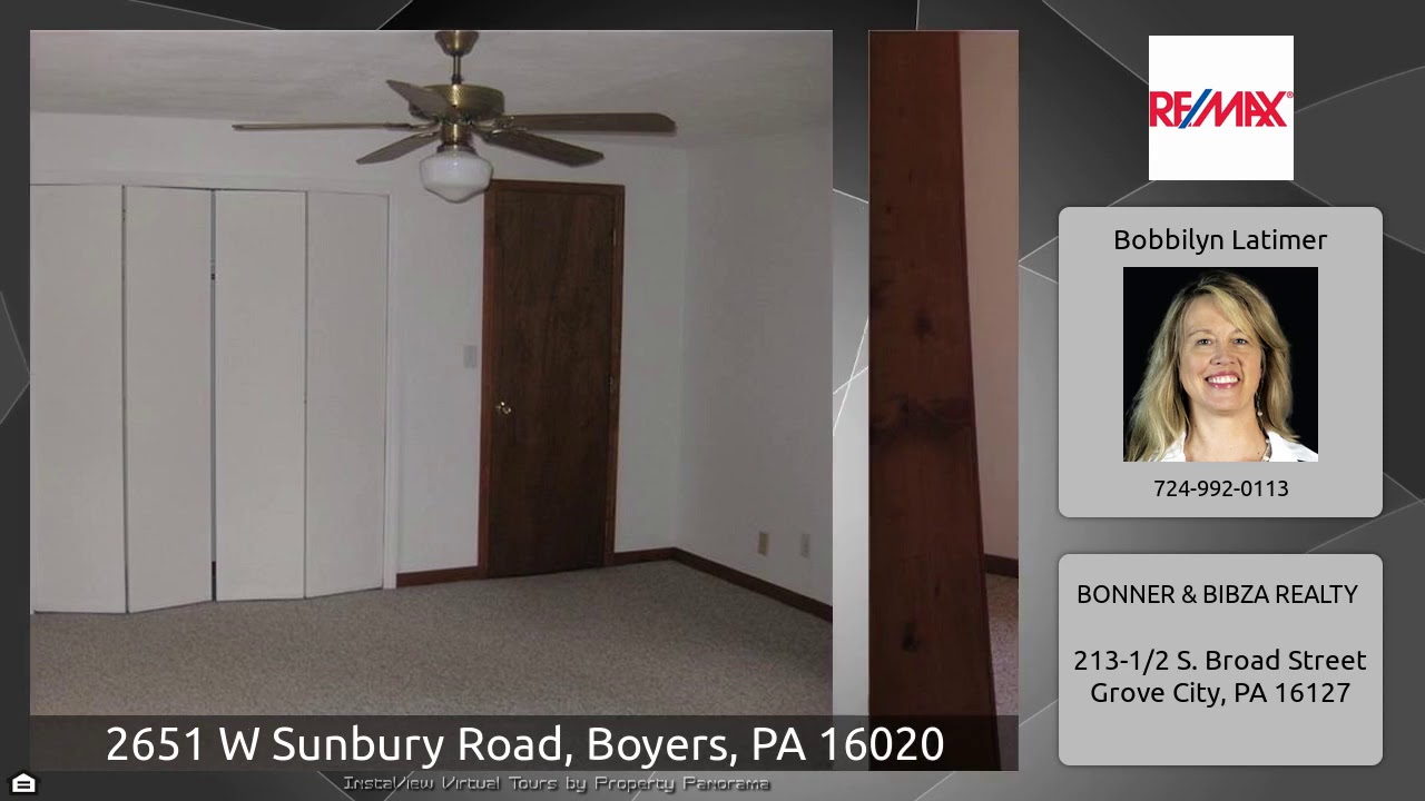 The Virtual Tour for the property at 2651 W Sunbury Road, Boyers, PA 16020 listed for $165,000: Other homes for sale by Bobbilyn Latimer of BONNER & BIBZA REALTY: Four lots in the country making up approximately 3 acres!!!! Spacious two story farmhouse with updated kitchen, electrical, windows and more!!!!! Situated on the corner of W Sunbury Road and SR 308 this home offers so much! Two additional detached garages allow plenty of space for a business, barn or just a private workshop. The home has an updated kitchen and two full bathrooms. French doors between dining and main floor living room …