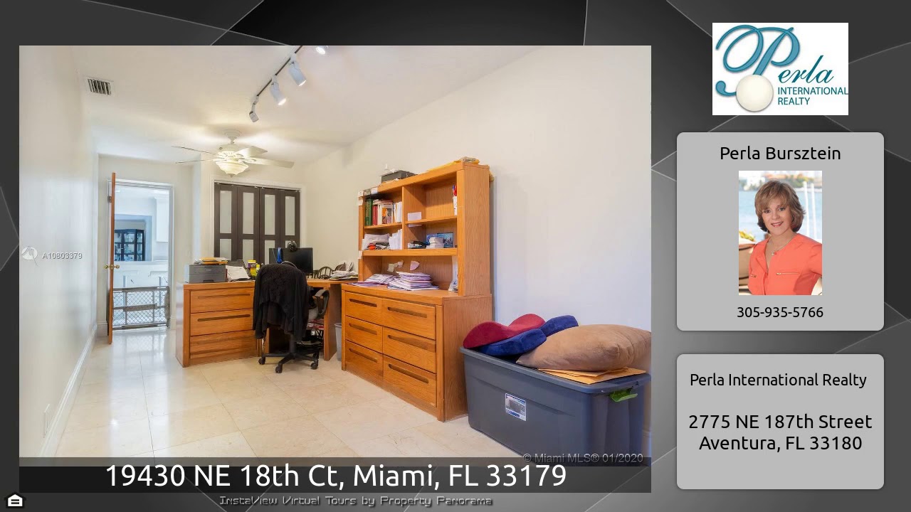 The Virtual Tour for the property at 19430 NE 18th Ct, Miami, FL 33179 listed for $535,000: Other homes for sale by Perla Bursztein of Perla International Realty: Gorgeous home 3 bedroom 3 bath, with a family room and an office. You walk into a huge living room/ dining roon area with French Doors that lead out to a lovely back yard that is all fenced in with privacy hedges. The house has been completely redone in great taste. Freshly painted. New kitchen w/quartz countertops, new floors, lighting & cabinets. Bathroom updated. Walking distance to House of Worship. Very easy to show!
