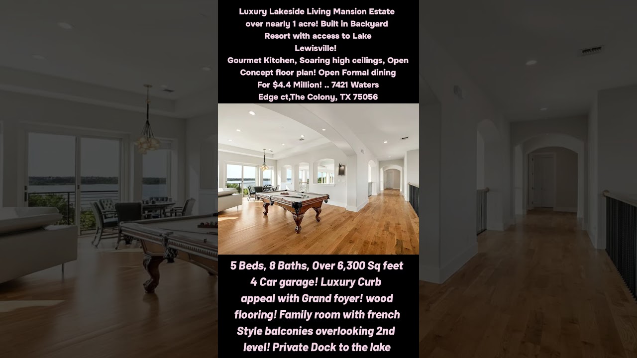 “ELEGANT LAKESIDE LIVING” MANSION Estate with your own built in Private Dock and Backyard with made like a Retreat ! 🏰🏰🏠 .. Priced $4.4. Million! .. Located: 7421 Waters Edge Ct, The Colony, TX 75056 ❤️❤️