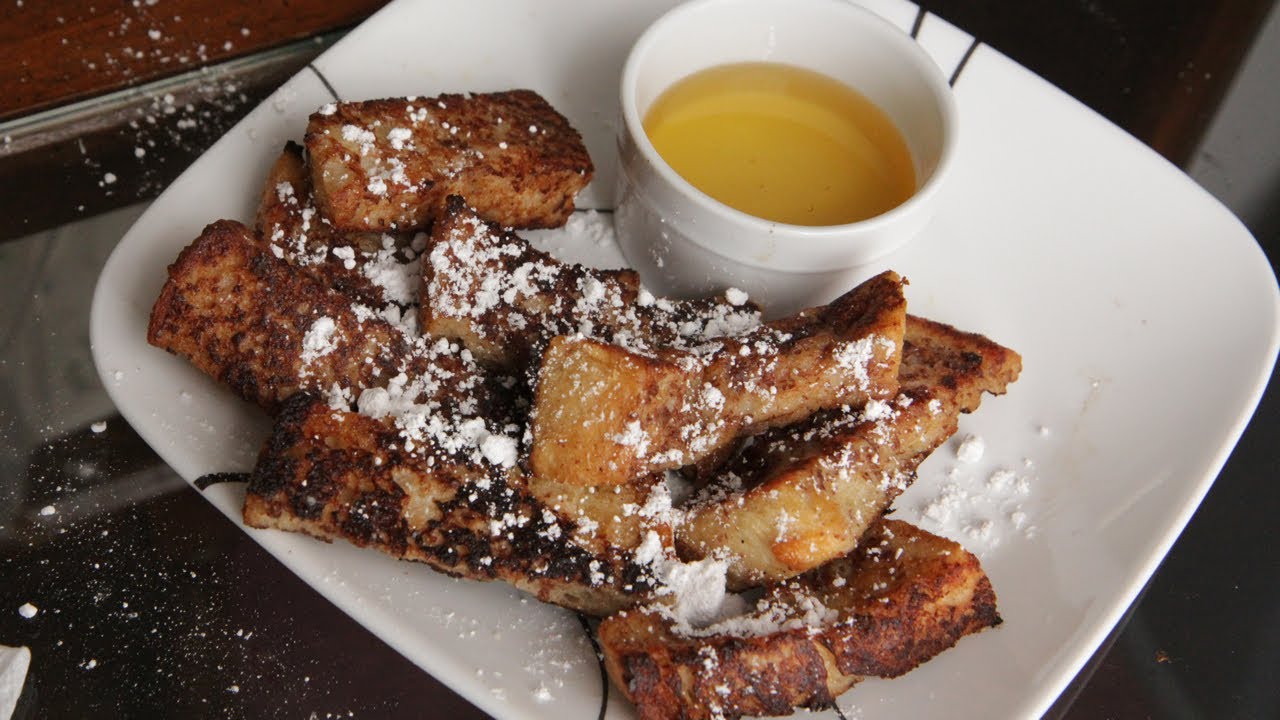 Fry the French toast sticks about 5 or 6 at a time. Brown on each side and then remove to a plate.