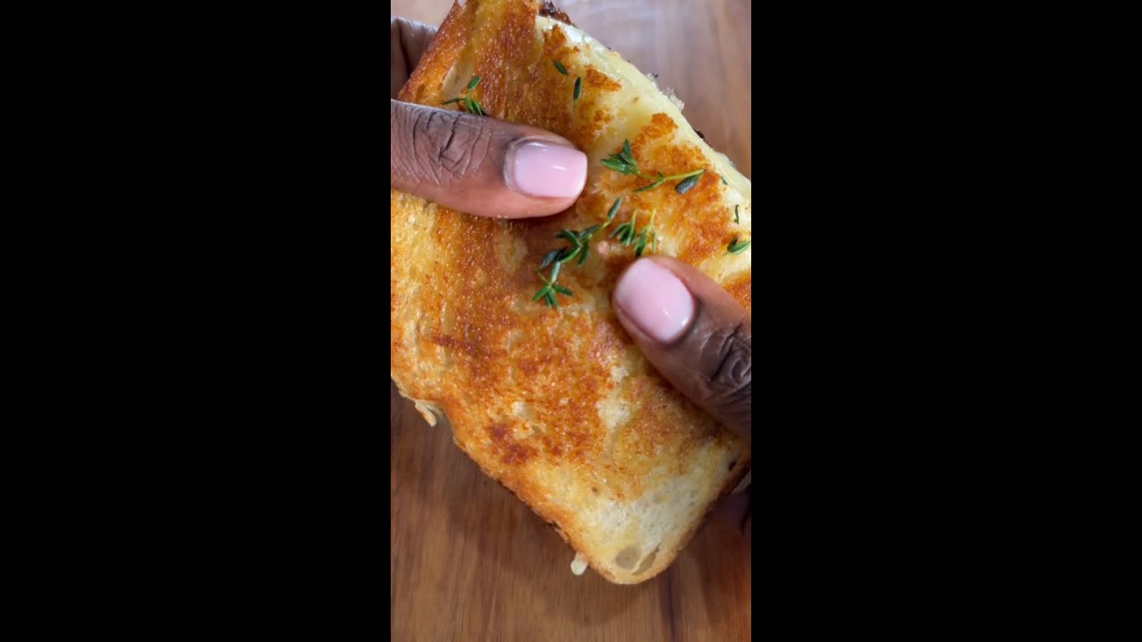 To celebrate, I’m making a French Onion Havarti grilled cheese. Look at that cheese pull!