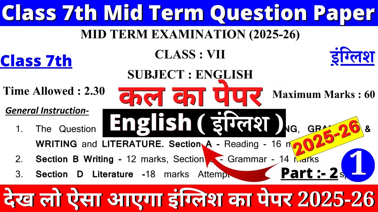 class 7 english mid term sample paper 2025-26 | class 7 english mid term question paper 2025-26 |doe