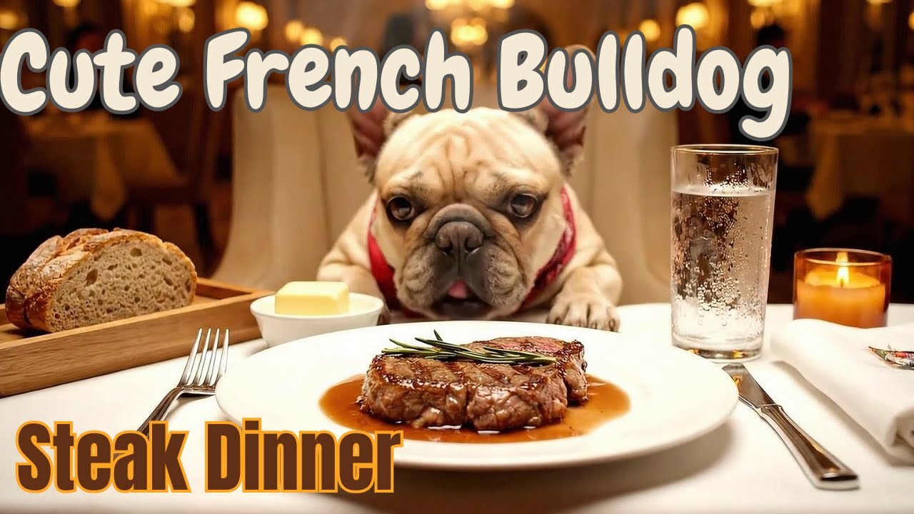 Join this adorable French Bulldog on a relaxing city stroll that ends with a fancy steak dinner! 🐶🥩