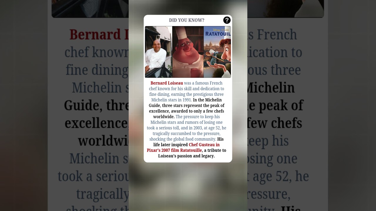 🏛️ Video Specific: #BernardLoiseau #MichelinStarChef #Ratatouille #CulinaryLegends #ChefFacts