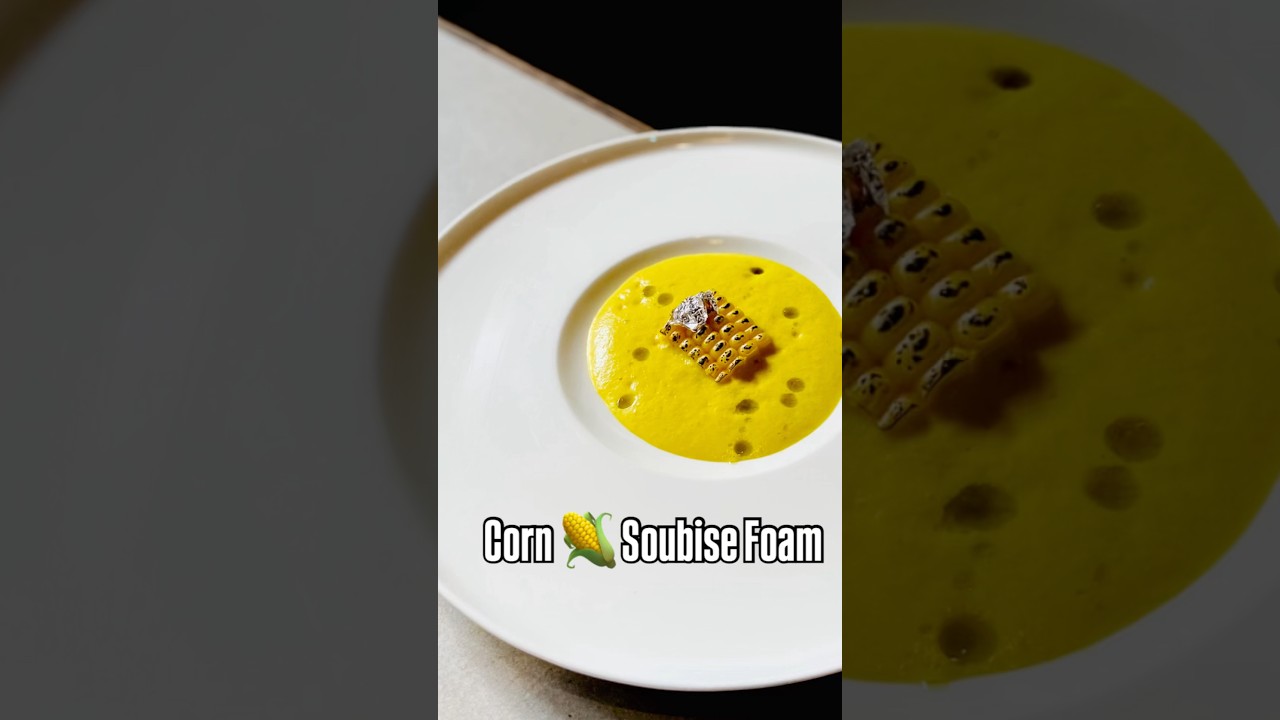 Soubise sauce is a classic French sauce made from puréed cooked onions incorporated into a thick, creamy white sauce, hereby creating this classical sauce with pumpkin, saffron and charred corn with an amazing foaming technique to be served as a hot appetiser to go along with any dish.