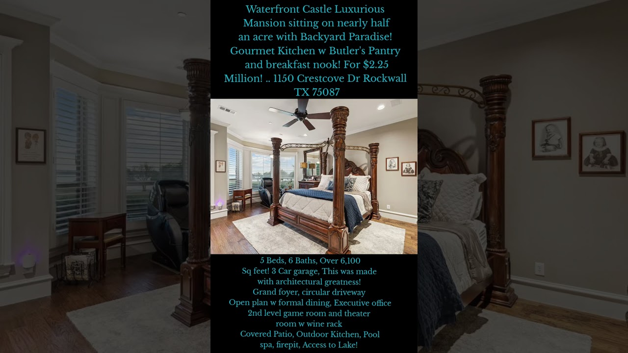 “WATERFRONT CASTLE LUXURIOUS MANSION” Sitting on Nearly half an acre with Backyard Paradise! 🏰🏰🏠 .. For $2.25 Million! … Located: 1150 Crestcove Dr, Rockwall, TX 75087