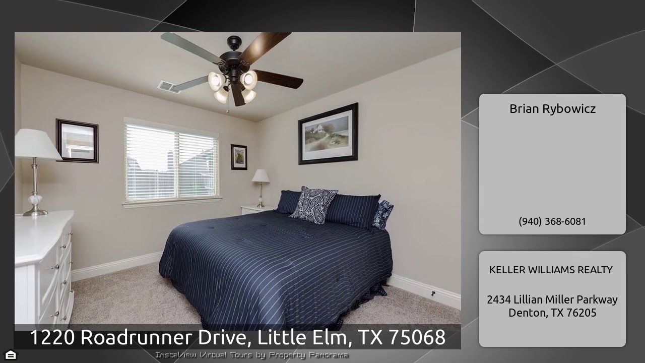 The Virtual Tour for the property at 1220 Roadrunner Drive, Little Elm, TX 75068 listed for $308,900: Other homes for sale by Brian Rybowicz of KELLER WILLIAMS REALTY: ***SELLER TO PAY $1,200 FOR BUYER'S CLOSING COSTS or TOWARDS FRENCH DOORS ON FRONT DINING-OFFICE AREA.*** Loaded Bloomfield Home with upgrades! Cypress 2 plan. Extensive hardwood floors. Mahogany~glass~iron front door. Stone elevation. Stone fireplace. 2 inch blinds. DELUXE KITCHEN PACKAGE adds extra cabinet space. 1.5 story floor plan with only the game room and 4th bedroom upstairs. Front dining room would be easy to …