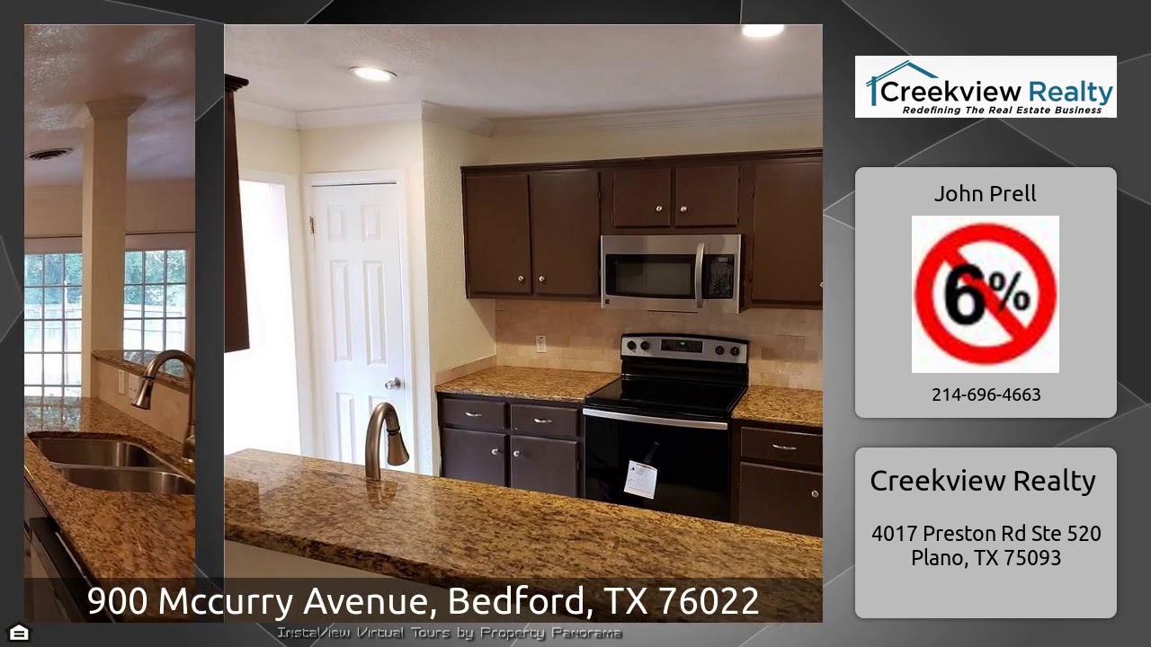 The Virtual Tour for the property at 900 Mccurry Avenue, Bedford, TX 76022 listed for $222,000: Other homes for sale by John Prell of Creekview Realty: Spacious 3 bedroom, 2 full baths, renovated, french door to the big backyard and porch, 2 living area and, 2 dining area, close to major state hwy, close to shopping area and schools (Hurst, Euless, Bedford ISD).settled and safe neighborhood. 10 minutes from DFW Airport. 25 minute from Dallas, Or Fort Worth. New roof and new vinyl energy saving windows (inside fold for easy cleaning), and also energy saving vinyl patio door.