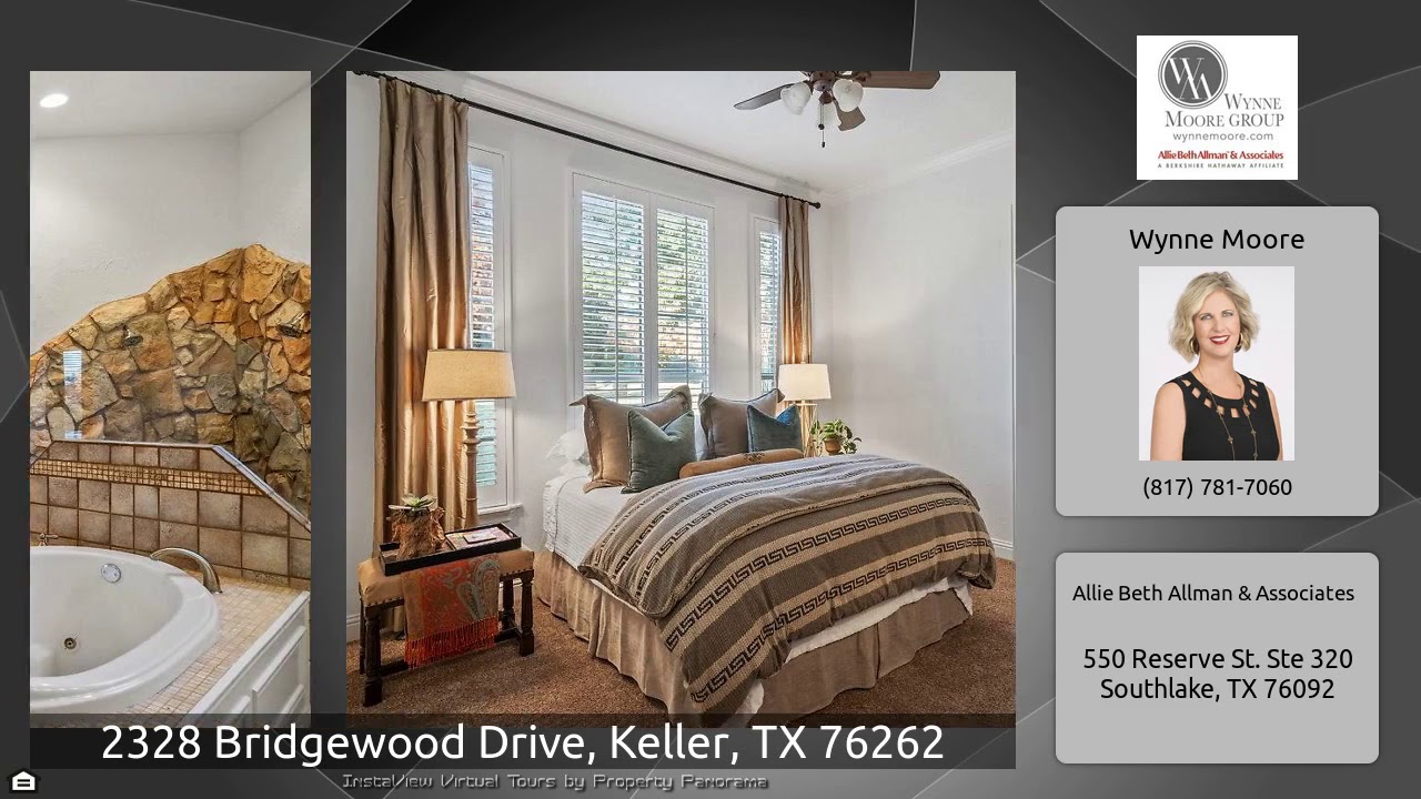 The Virtual Tour for the property at 2328 Bridgewood Drive, Keller, TX 76262 listed for $732,500: Other homes for sale by Wynne Moore of Allie Beth Allman & Associates: Perfectly placed in Keller, this stately home has a sprawling front yard, pristine landscaping, mature trees, and a welcoming exterior. Double steel doors create a dramatic entry as you step into this beautiful home. On your left, French doors open to a tranquil study followed by a formal living and dining room. Throughout this home find hardwood floors, beautiful finishes, plantation shutters, an abundance of natural light, …